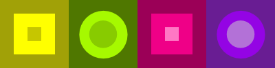 Complementary: The complement of yellow on a CMY colour wheel is violet. Complementary colours can look good together, but the edge between them tends to ‘vibrate’ when they're put side by side. Yellow and violet are no exception. If they're used sparingly, though, they can make a huge impact.