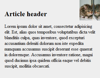 Now we need to move the author's profile picture to the top-right corner. This is easily done using position: absolute on the element that contains the image (not the image itself), and by setting the top and right properties to 0. We'll also get rid of any nasty default margins.