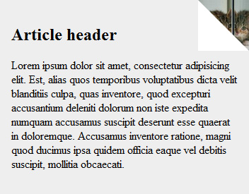 On a desktop, when the mouse hovers over an article summary, the top right corner appears to fold, revealing the author's profile picture (Figure 1). As I discovered in the previous post, this is achieved using an SVG image, which has been disguised in CSS using base64. We can see the image in Figure 2: